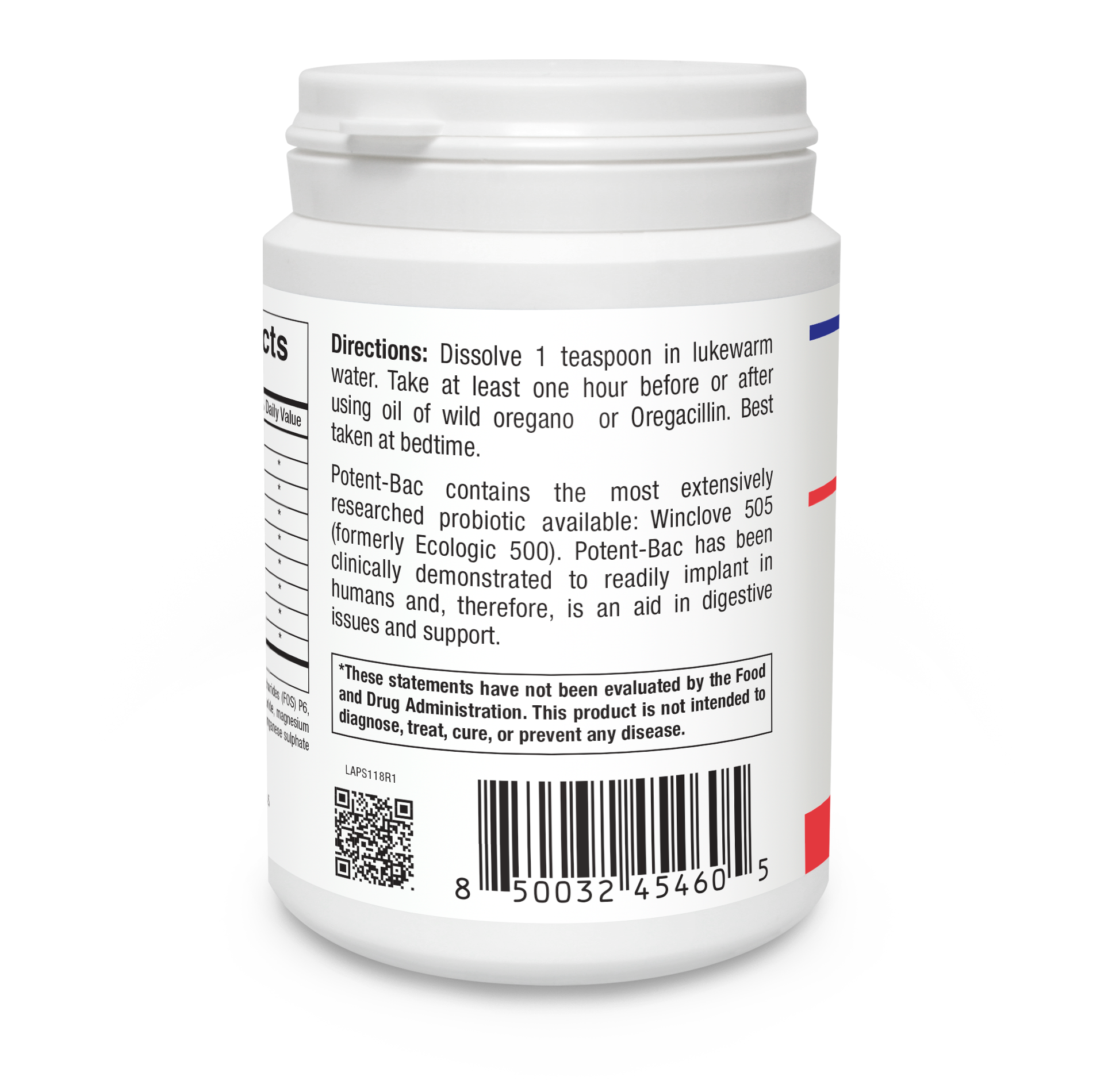 Dissolve 1 teaspoon in lukewarm water at least two hours before or after taking Oreganol or OregaResp P73. Best to take at bedtime.
